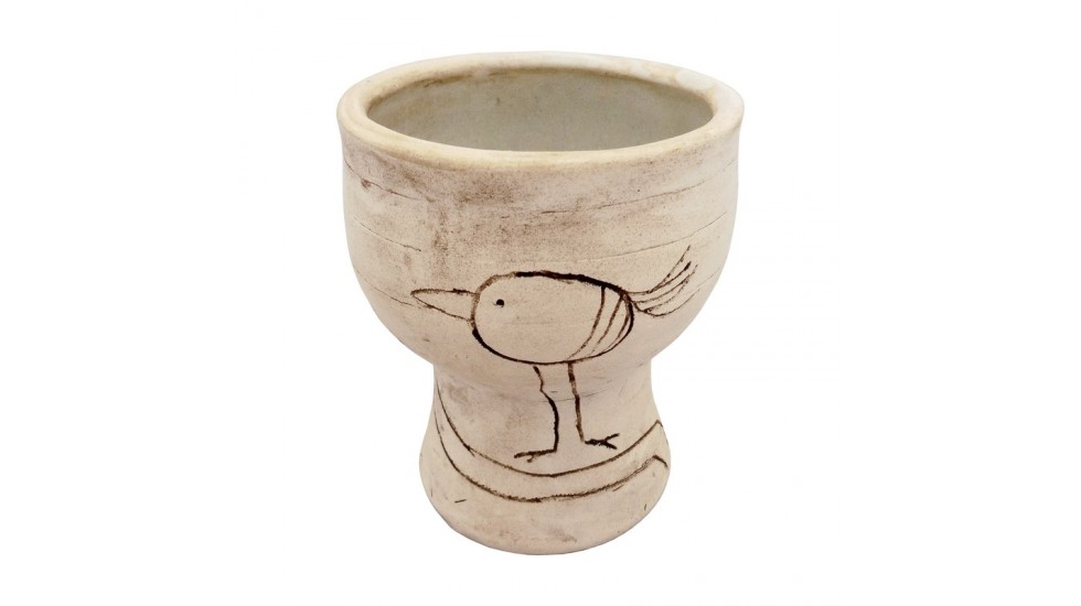 Malá ručně tvarovaná a vypalovaná keramická číše s motivem.