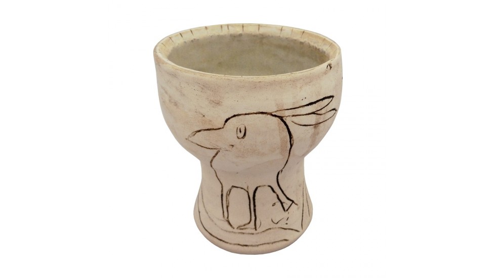 Malá ručně tvarovaná a vypalovaná keramická číše s motivem.