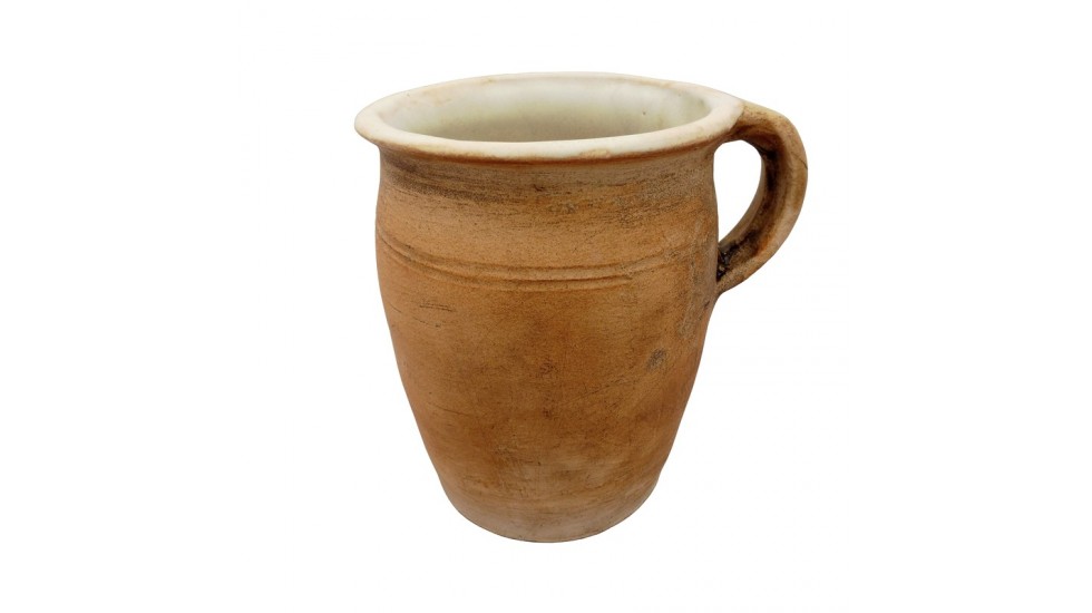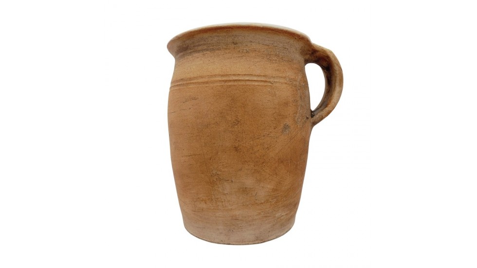 Střední ručně tvarovaný a vypalovaný keramický džbán - buclák s uchem.