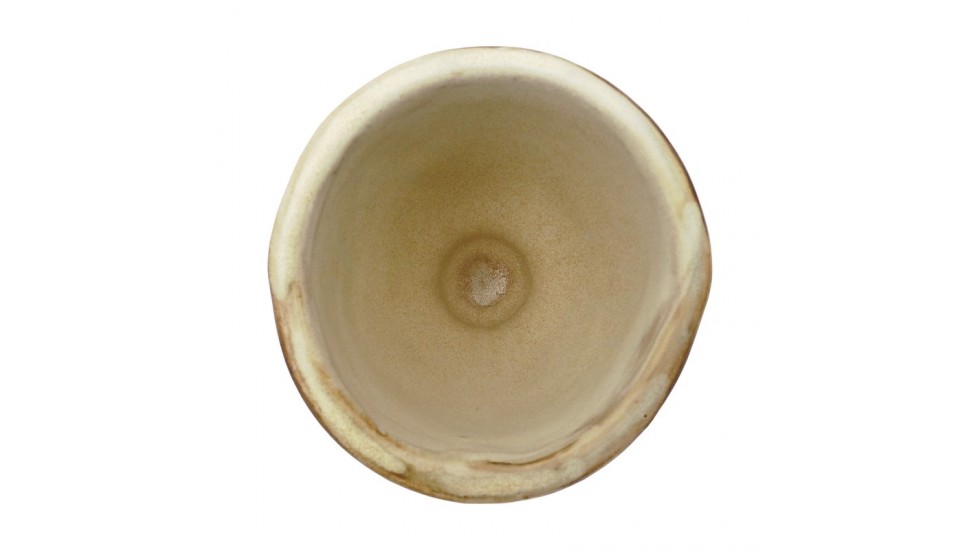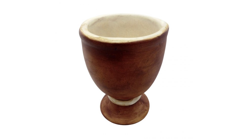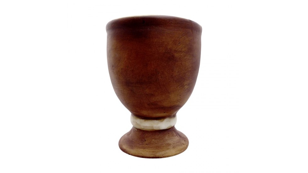 Malý ručně tvarovaný a vypalovaný keramický pohár.