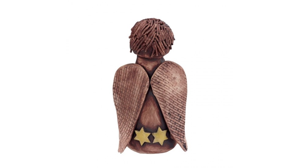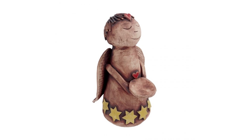 Vánoční ručně tvarovaný a vypalovaný keramický anděl dobročinnosti.